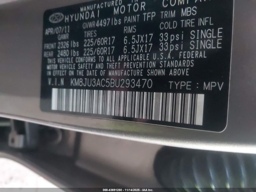 2011 HYUNDAI TUCSON 2011 року Бензин, 2.4, Передний привод, vin - KM8JU3AC5BU293470 из США