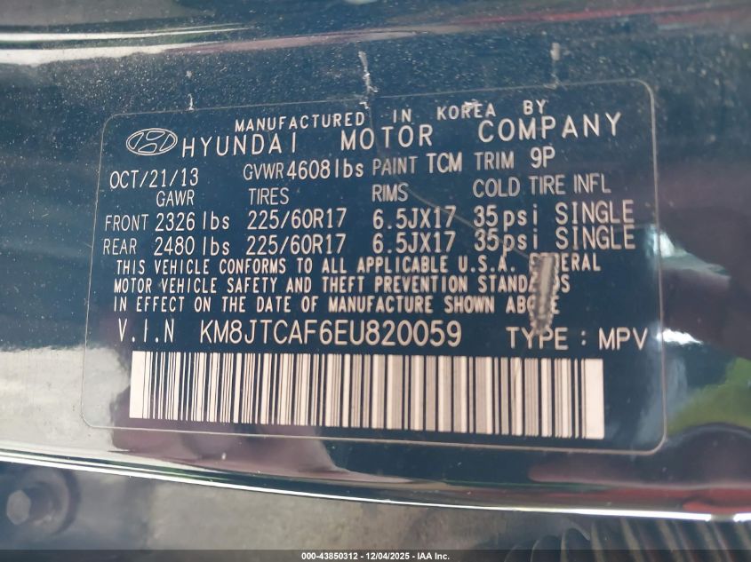 2014 HYUNDAI TUCSON 2014 року Бензин, 2.0, Полный привод, vin - KM8JTCAF6EU820059 из США