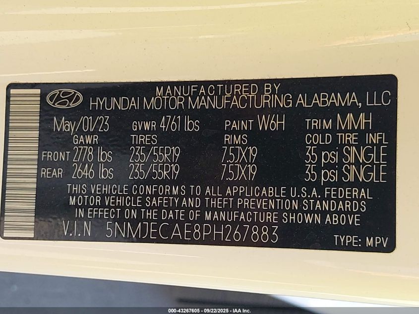 Цвет БелыйЦилиндры 4Привод Полный приводVIN 5NMJECAE8PH267883Состояние Заводится и едет (проверено)Повреждения Левая сторонаДата аукциона 2025-12-10 AutoRIA