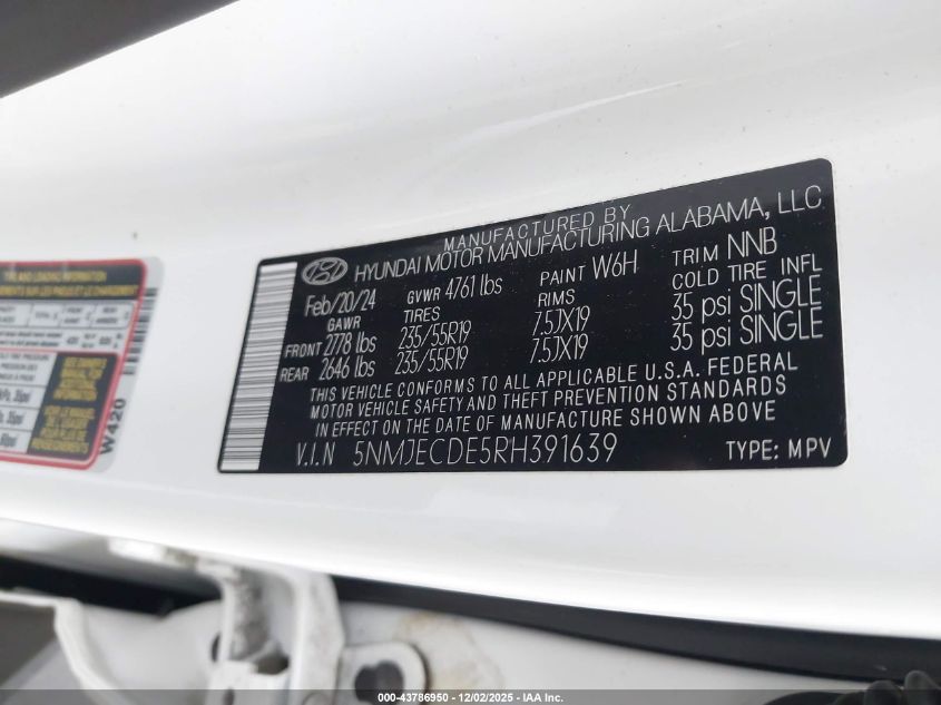 2024 HYUNDAI TUCSON 2024 року Бензин, 2.5, Полный привод, vin - 5NMJECDE5RH391639 из США