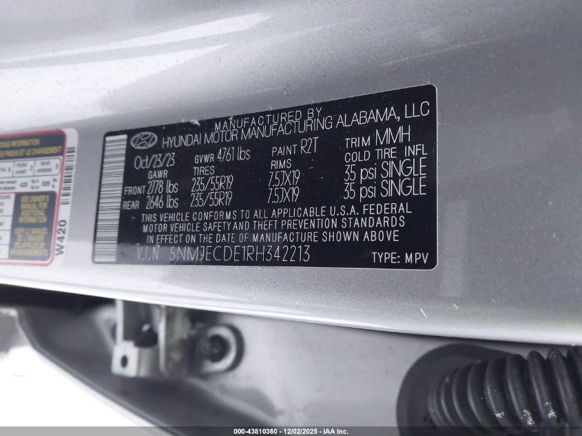 2024 HYUNDAI TUCSON 2024 року Бензин, 2.5, Полный привод, vin - 5NMJECDE1RH342213 из США