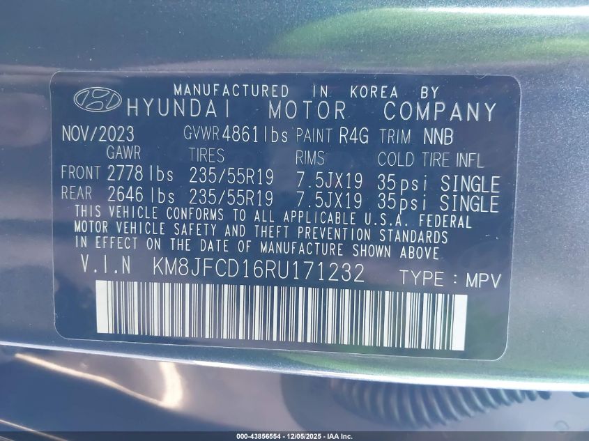 2024 HYUNDAI TUCSON 2024 року Гибрид, 1.6, Полный привод, vin - KM8JFCD16RU171232 из США