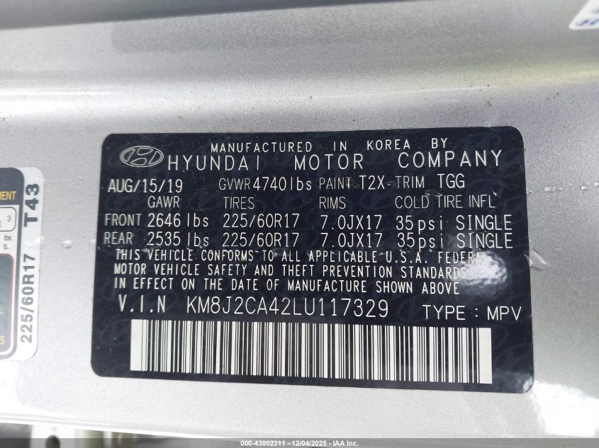 2020 HYUNDAI TUCSON 2020 року Бензин, 2.0, Полный привод, vin - KM8J2CA42LU117329 из США