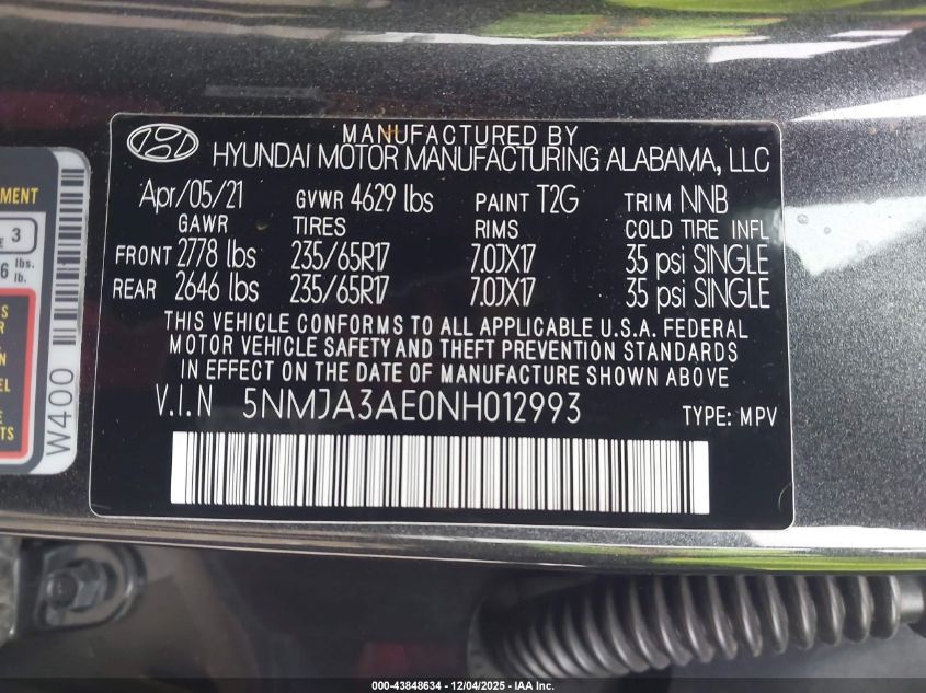 Цвет СерыйЦилиндры 4Привод Передний приводVIN 5NMJA3AE0NH012993Состояние Заводится и едет (проверено)Повреждения По бокам AutoRIA