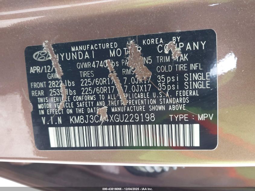 Цвет КоричневийЦилиндры 4Привод Полный приводVIN KM8J3CA4XGU229198Состояние Заводится и едет (проверено)Повреждения Задняя AutoRIA