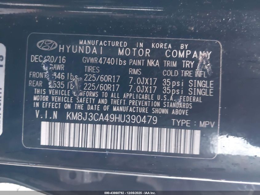 2017 HYUNDAI TUCSON 2017 року Бензин, 2.0, Полный привод, vin - KM8J3CA49HU390479 из США