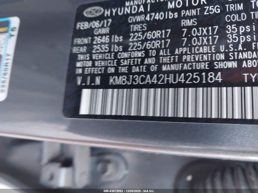 2017 HYUNDAI TUCSON 2017 року Бензин, 2.0, Полный привод, vin - KM8J3CA42HU425184 из США
