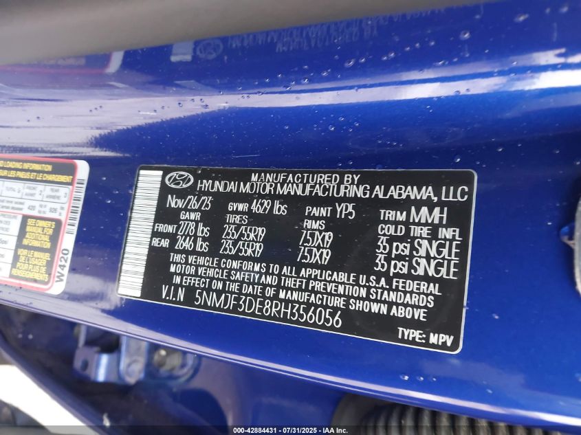 2024 HYUNDAI TUCSON 2024 року Бензин, 2.5, Передний привод, vin - 5NMJF3DE8RH356056 из США