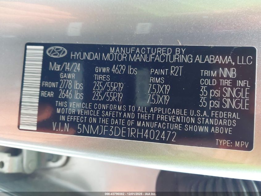2024 HYUNDAI TUCSON 2024 року Бензин, 2.5, Передний привод, vin - 5NMJF3DE1RH402472 из США