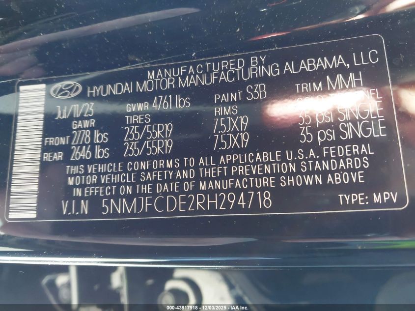 2024 HYUNDAI TUCSON 2024 року Бензин, 2.5, Полный привод, vin - 5NMJFCDE2RH294718 из США