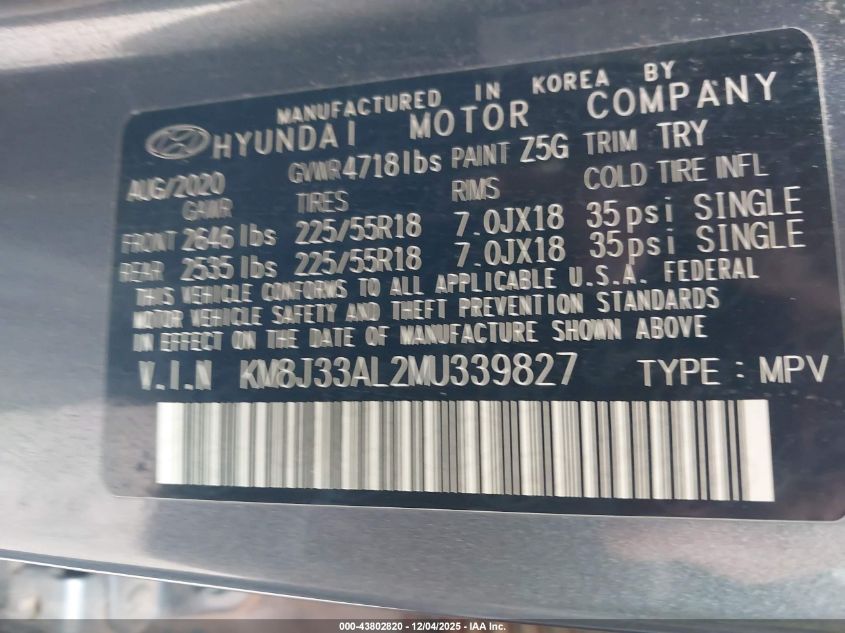 2021 HYUNDAI TUCSON 2021 року Бензин, 2.4, Передний привод, vin - KM8J33AL2MU339827 из США