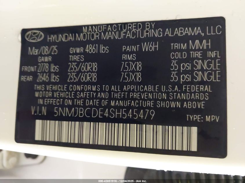 2025 HYUNDAI TUCSON 2025 року Бензин, 2.5, Полный привод, vin - 5NMJBCDE4SH545479 из США