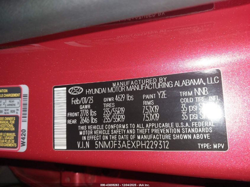 2023 HYUNDAI TUCSON 2023 року Бензин, 2.5, Передний привод, vin - 5NMJF3AEXPH229312 из США