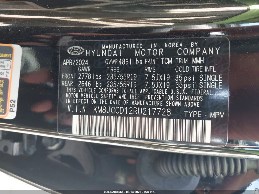 2024 HYUNDAI TUCSON 2024 року Гибрид, 1.6, Полный привод, vin - KM8JCCD12RU217728 из США