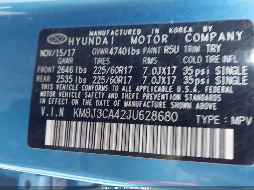 2018 HYUNDAI TUCSON 2018 року Бензин, 2.0, Полный привод, vin - KM8J3CA42JU628680 из США