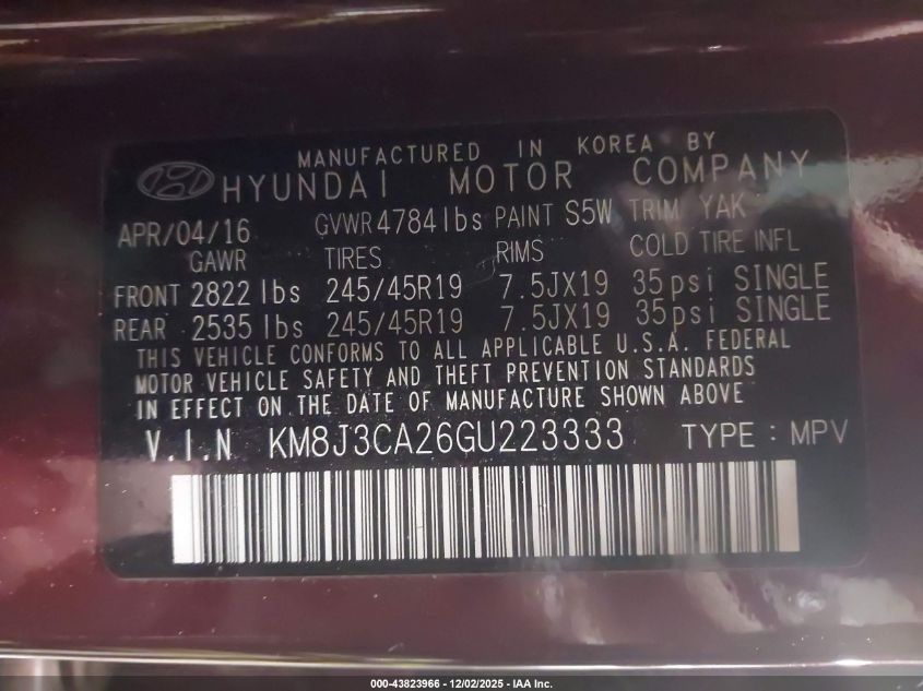 Цвет КрасныйЦилиндры 4Привод Полный приводVIN KM8J3CA26GU223333Состояние СтационарноПовреждения Передняя или задняя AutoRIA