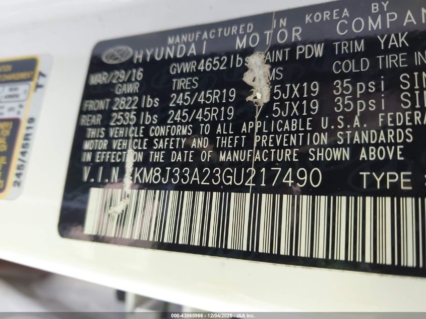 2016 HYUNDAI TUCSON 2016 року Бензин, 1.6, Передний привод, vin - KM8J33A23GU217490 из США