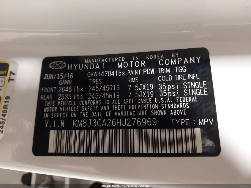 2017 HYUNDAI TUCSON 2017 року Бензин, 1.6, Полный привод, vin - KM8J3CA26HU276969 из США