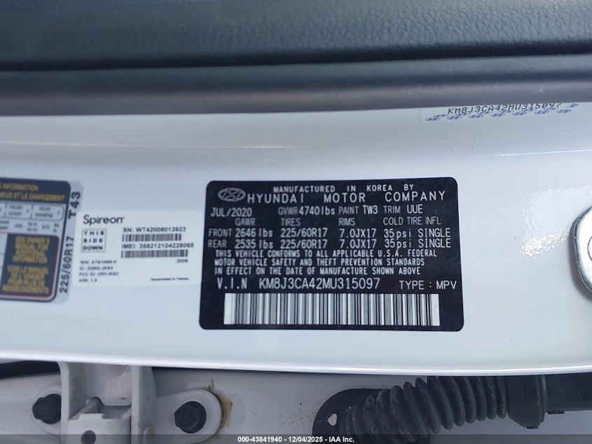 2021 HYUNDAI TUCSON 2021 року Бензин, 2.0, Полный привод, vin - KM8J3CA42MU315097 из США