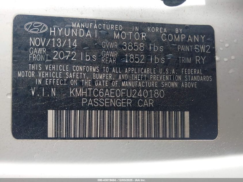 2015 HYUNDAI VELOSTER