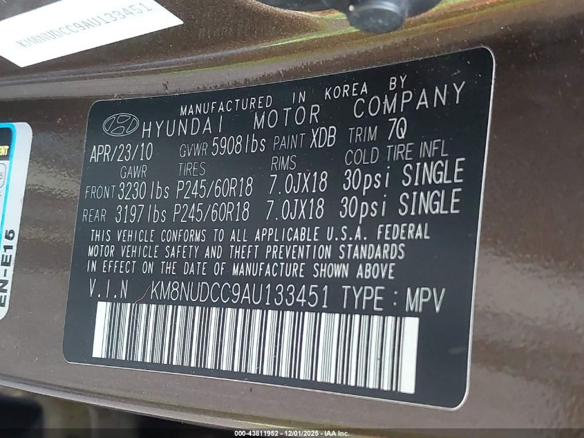 2010 HYUNDAI VERACRUZ 2010 року Бензин, 3.8, Полный привод, vin - KM8NUDCC9AU133451 из США