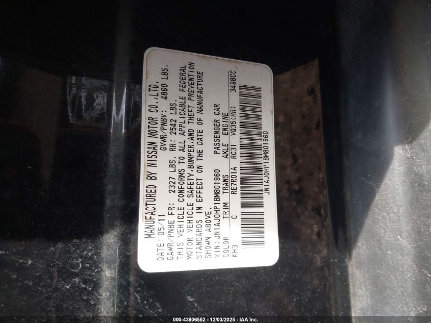 2011 INFINITI EX35 2011 року Бензин, 3.5, , vin - JN1AJ0HP1BM801960 из США
