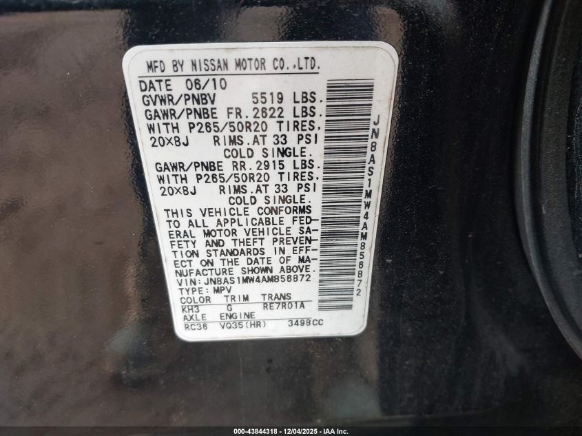 Цвет ЧерныйЦилиндры 6Привод Полный приводVIN JN8AS1MW4AM856872Состояние ЗаводитсяПовреждения Передняя правая AutoRIA