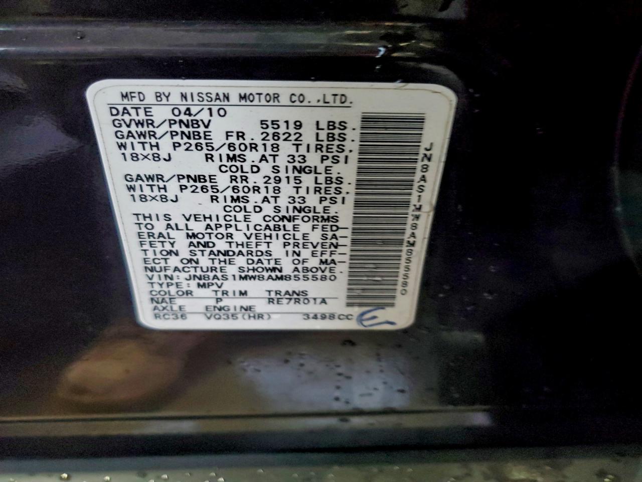 Цвет КоричневийЦилиндры 6Привод Полный приводVIN JN8AS1MW8AM855580Состояние Заводится и едет (проверено)Повреждения НезначительныеДата аукциона 2025-12-10 AutoRIA
