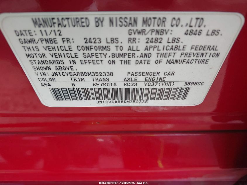 Цвет КрасныйЦилиндры 6Привод Полный приводVIN JN1CV6AR8DM352338Состояние Заводится и едет (проверено)Повреждения Незначительные AutoRIA