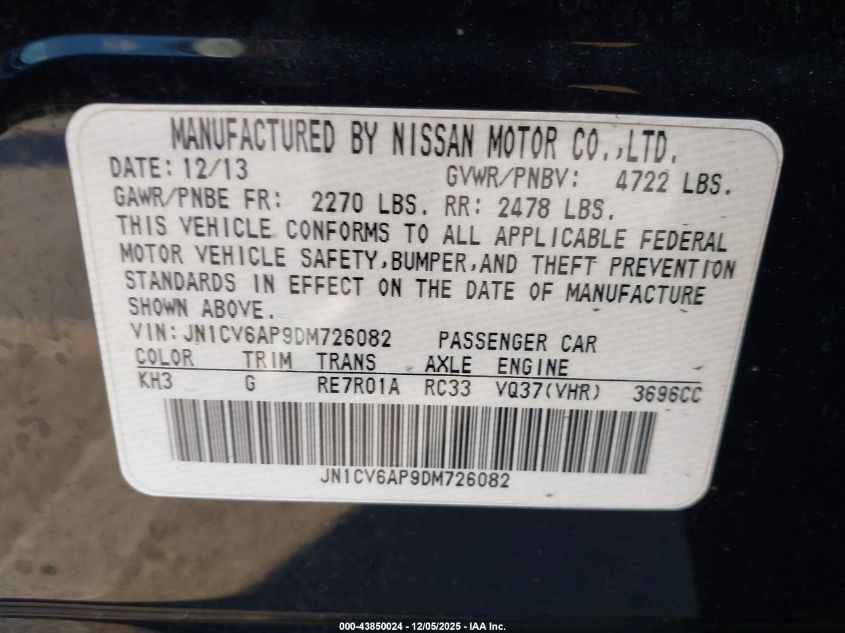 Цвет ЧерныйЦилиндры 6Привод Задний приводVIN JN1CV6AP9DM726082Состояние СтационарноПовреждения Электрика AutoRIA