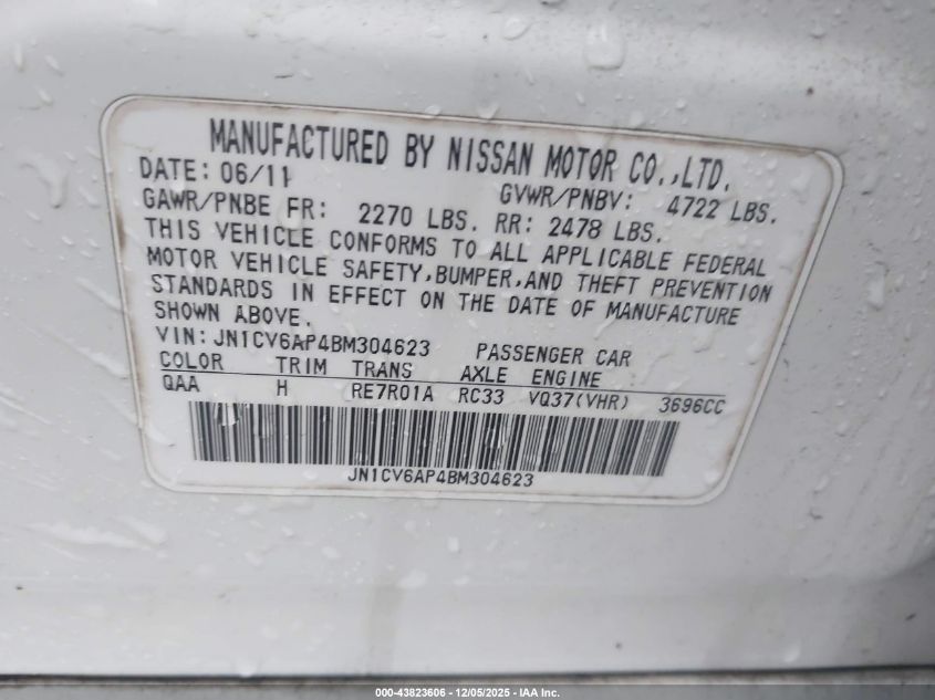 Цвет БелыйЦилиндры 6Привод Задний приводVIN JN1CV6AP4BM304623Состояние Заводится и едет (проверено)Повреждения Задняя AutoRIA