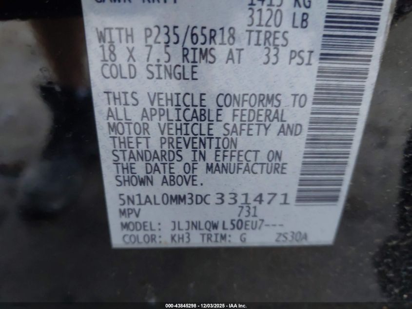 Цвет ЧерныйЦилиндры 6Привод Полный приводVIN 5N1AL0MM3DC331471Состояние СтационарноПовреждения Обычный износ AutoRIA