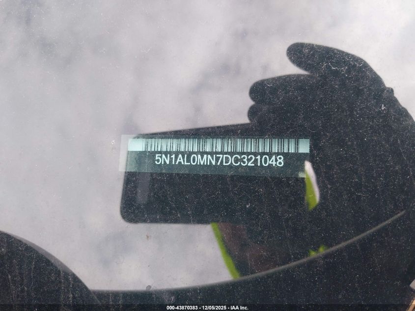 Цвет БелыйЦилиндры 6Привод Передний приводVIN 5N1AL0MN7DC321048Состояние Заводится и едет (проверено)Повреждения Левая сторона AutoRIA