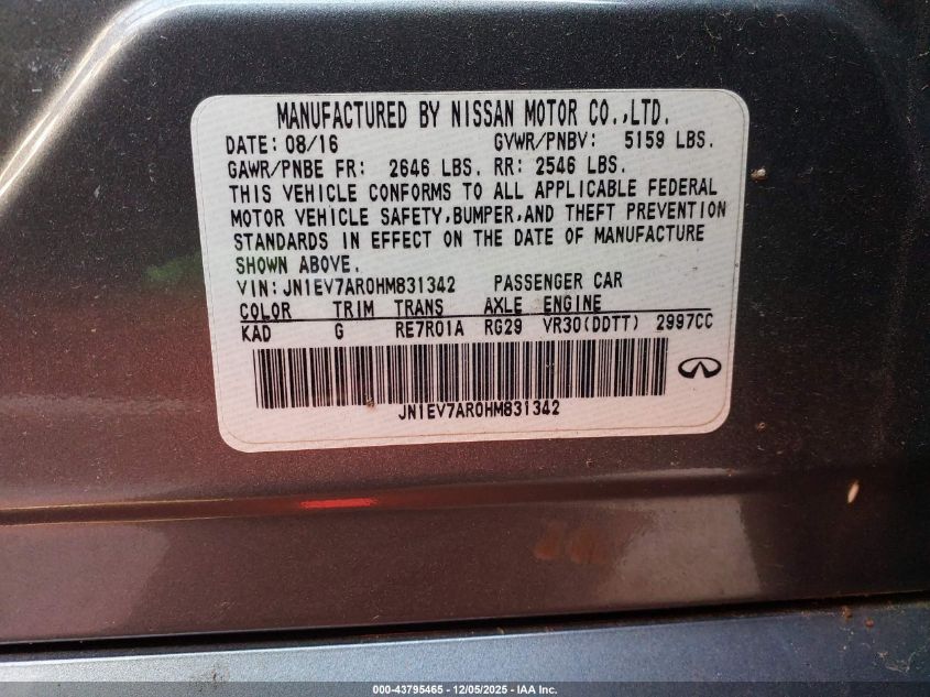 2017 INFINITI Q50 2017 року Бензин, 3.0, Полный привод, vin - JN1EV7AR0HM831342 из США