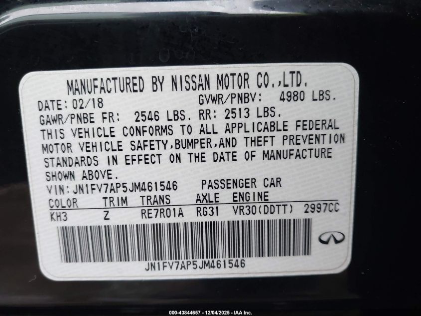 2018 INFINITI Q50 2018 року Бензин, 3.0, Задний привод, vin - JN1FV7AP5JM461546 из США