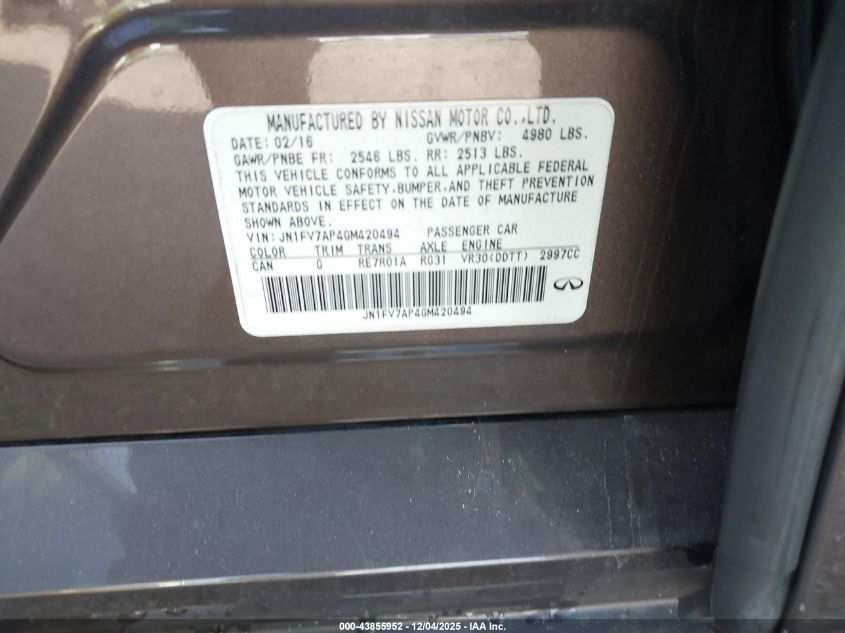 2016 INFINITI Q50 2016 року Бензин, 3.0, Задний привод, vin - JN1FV7AP4GM420494 из США