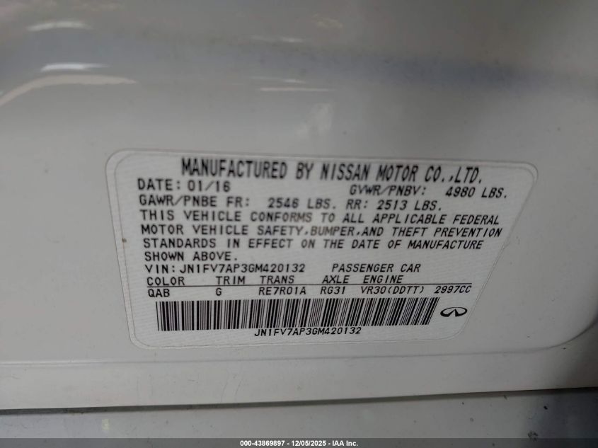 2016 INFINITI Q50 2016 року Бензин, 3.0, Задний привод, vin - JN1FV7AP3GM420132 из США