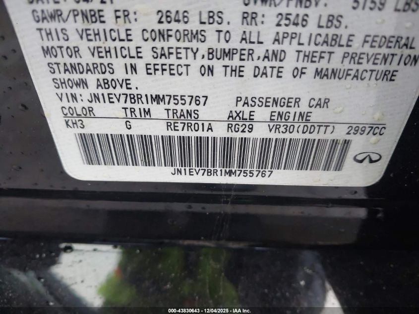 2021 INFINITI Q50 2021 року Бензин, 3.0, Полный привод, vin - JN1EV7BR1MM755767 из США