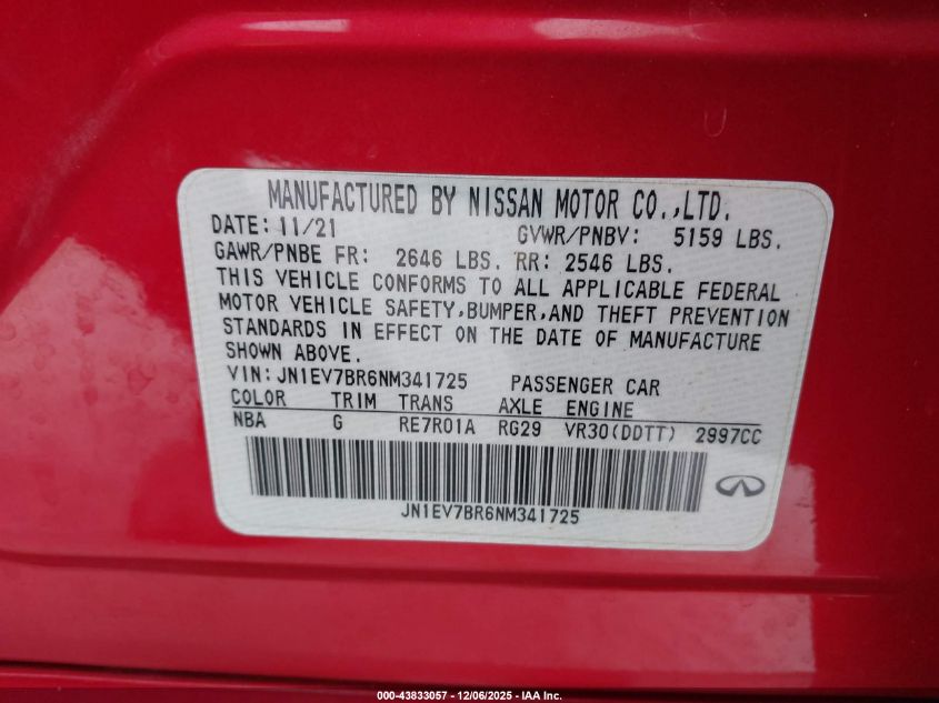 2022 INFINITI Q50 2022 року Бензин, 3.0, Полный привод, vin - JN1EV7BR6NM341725 из США