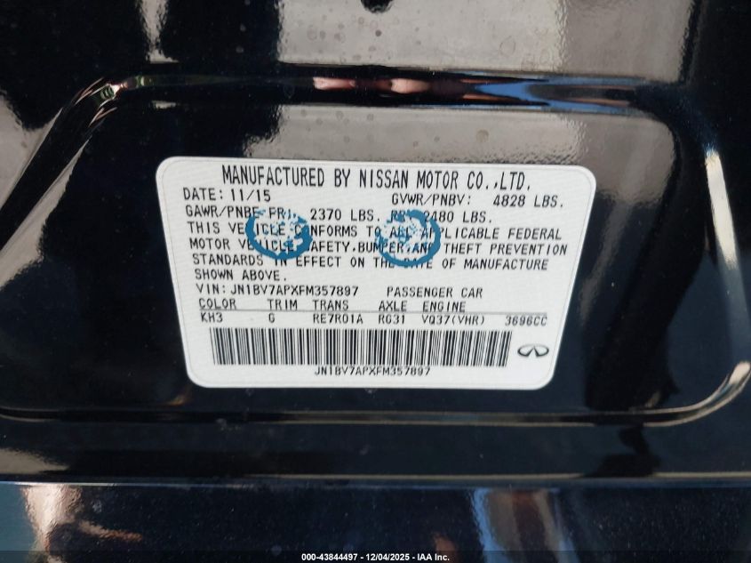 2015 INFINITI Q50 2015 року Бензин, 3.7, Задний привод, vin - JN1BV7APXFM357897 из США