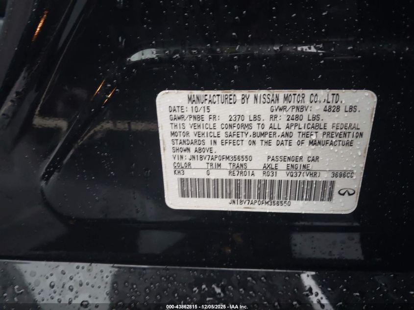 2015 INFINITI Q50 2015 року Бензин, 3.7, Задний привод, vin - JN1BV7AP0FM356550 из США