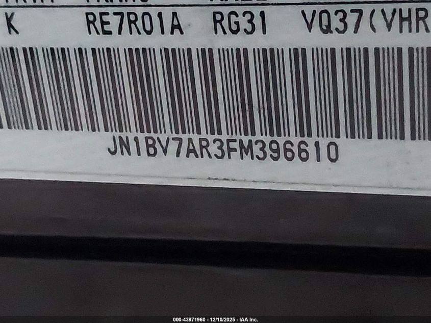 Цвет ЧерныйЦилиндры 6Привод Полный приводVIN JN1BV7AR3FM396610Состояние СтационарноПовреждения Передняя и задняя AutoRIA