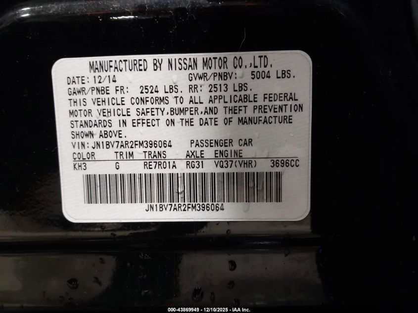 2015 INFINITI Q50 2015 року Бензин, 3.7, Полный привод, vin - JN1BV7AR2FM396064 из США