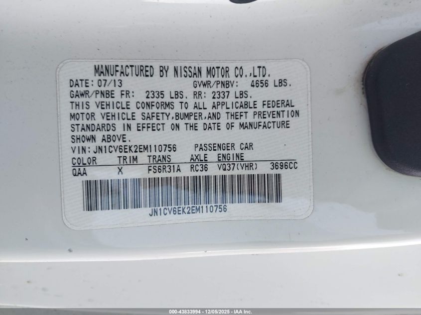 Цвет БелыйЦилиндры 6Привод Задний приводVIN JN1CV6EK2EM110756Состояние Заводится и едет (проверено)Повреждения Задняя AutoRIA