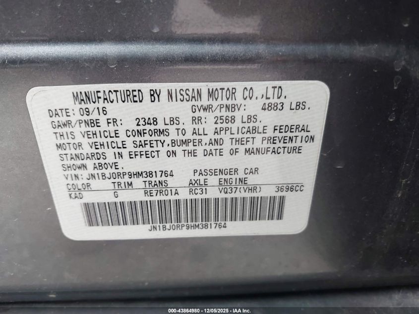 Цвет СерыйЦилиндры 6VIN JN1BJ0RP9HM381764Состояние СтационарноПовреждения Передняя или задняя AutoRIA