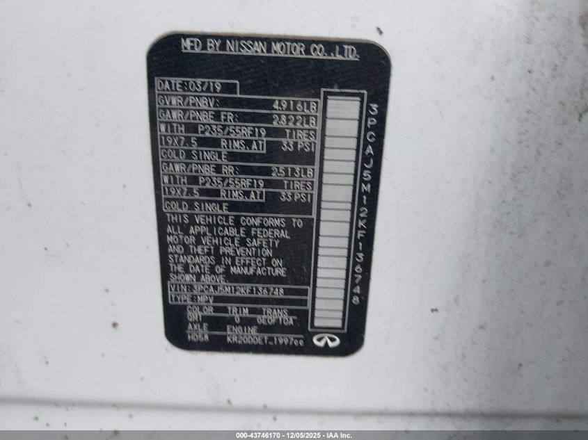 2019 INFINITI QX50 2019 року Бензин, 2.0, Передний привод, vin - 3PCAJ5M12KF136748 из США