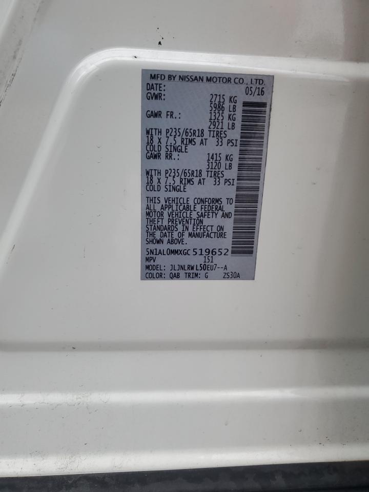 Цвет БелыйЦилиндры 6Привод Полный приводVIN 5N1AL0MMXGC519652Состояние Заводится и едет (проверено)Повреждения Передняя или задняя AutoRIA