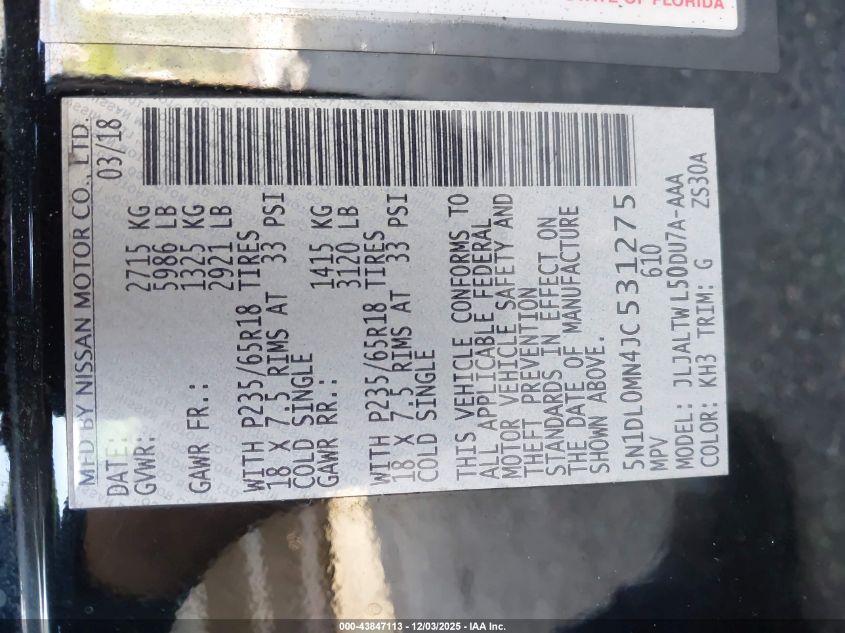 Цвет ЧерныйЦилиндры 6Привод Передний приводVIN 5N1DL0MN4JC531275Состояние Заводится и едет (проверено)Повреждения Передняя или задняя AutoRIA