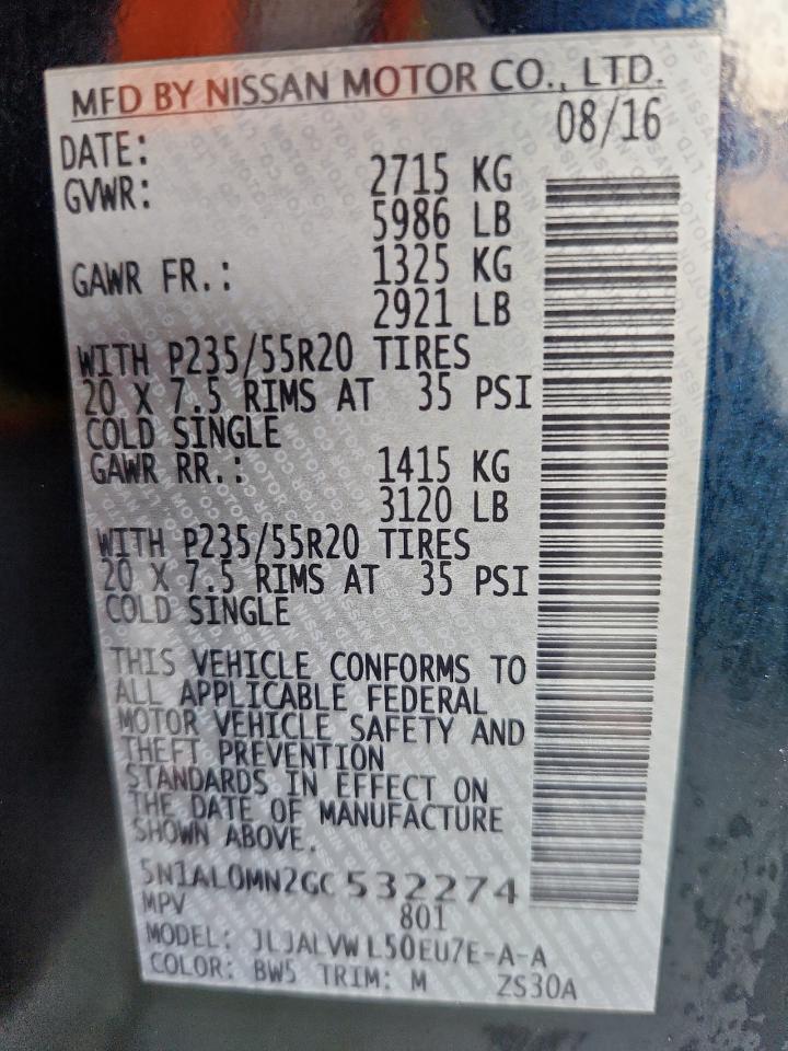 Цвет СинийЦилиндры 6VIN 5N1AL0MN2GC532274Состояние НеизвестноПовреждения Передняя или задняя AutoRIA