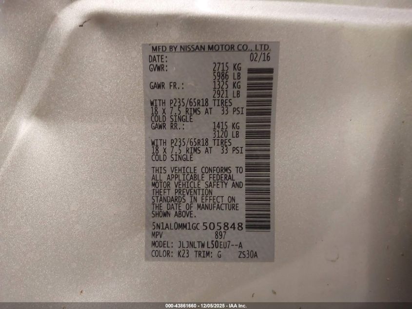 Цвет СеребряныйЦилиндры 6Привод Полный приводVIN 5N1AL0MM1GC505848Состояние СтационарноПовреждения Левая сторона AutoRIA